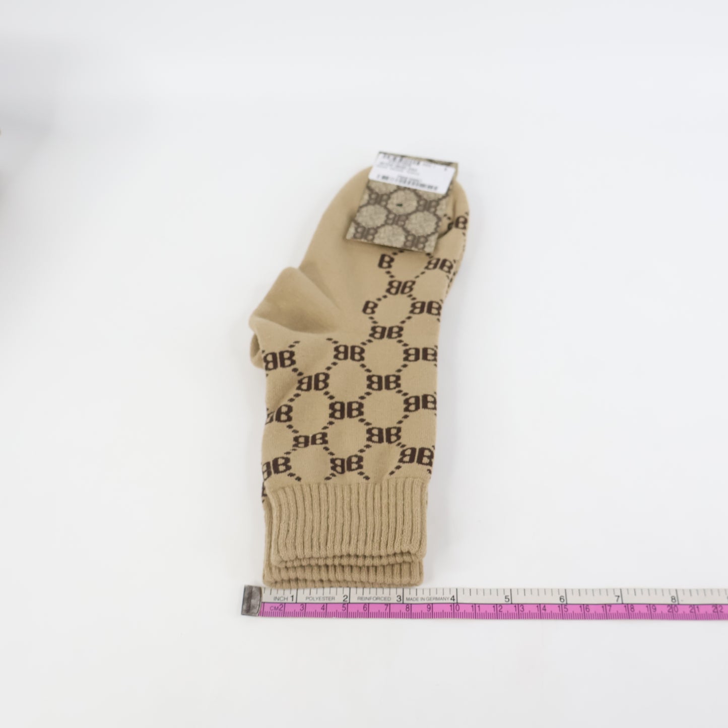 Elevate your fashion game with the Balenciaga x Gucci Sock Brown. These unique socks combine the iconic styles of Balenciaga and Gucci, for a luxurious and trendy look. The brown color adds a touch of sophistication to any outfit, making you stand out in style. Elevate your wardrobe and showcase your fashion sense with these exclusive socks.