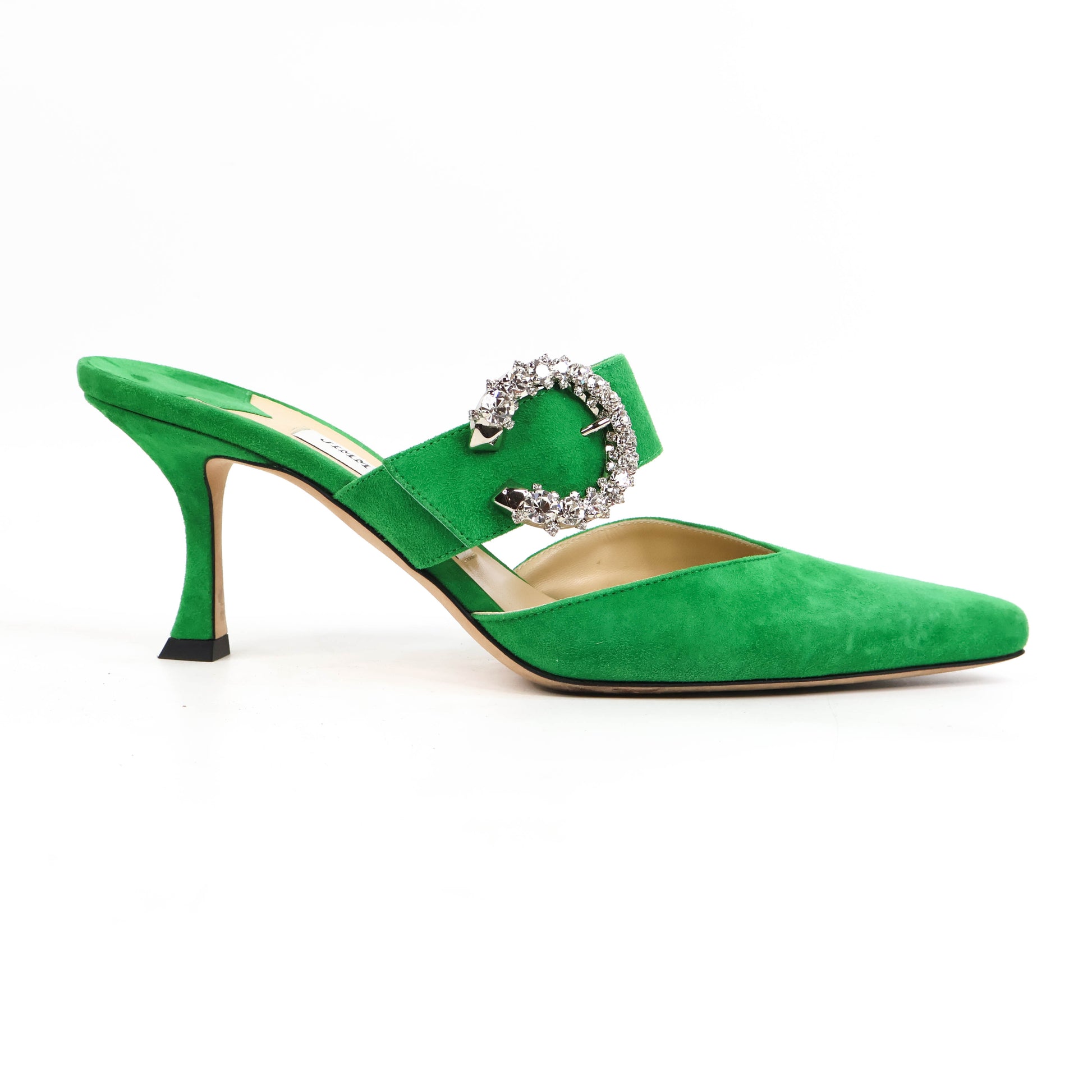 Jimmy Choo Sandals Heels Sude Green Crystal 38