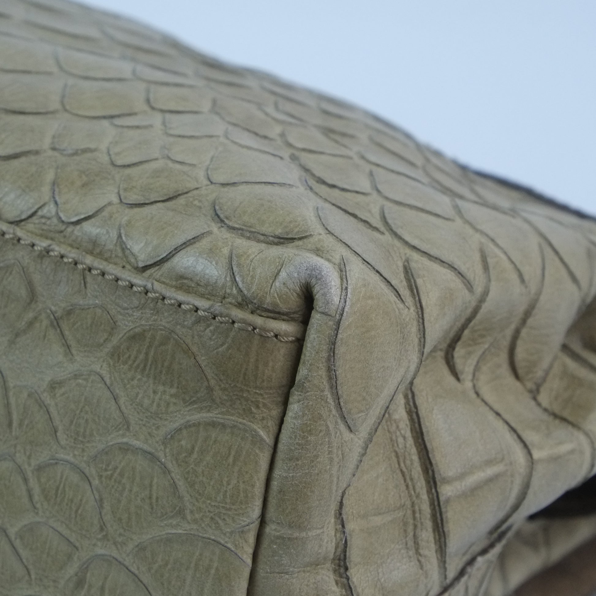 Transform your style with the Mulberry Alexa Python Print Khaki bag. The luxurious python print adds a touch of exotic elegance, while the practical design allows for effortless organization. Make a bold statement and elevate your outfit with this must-have accessory!