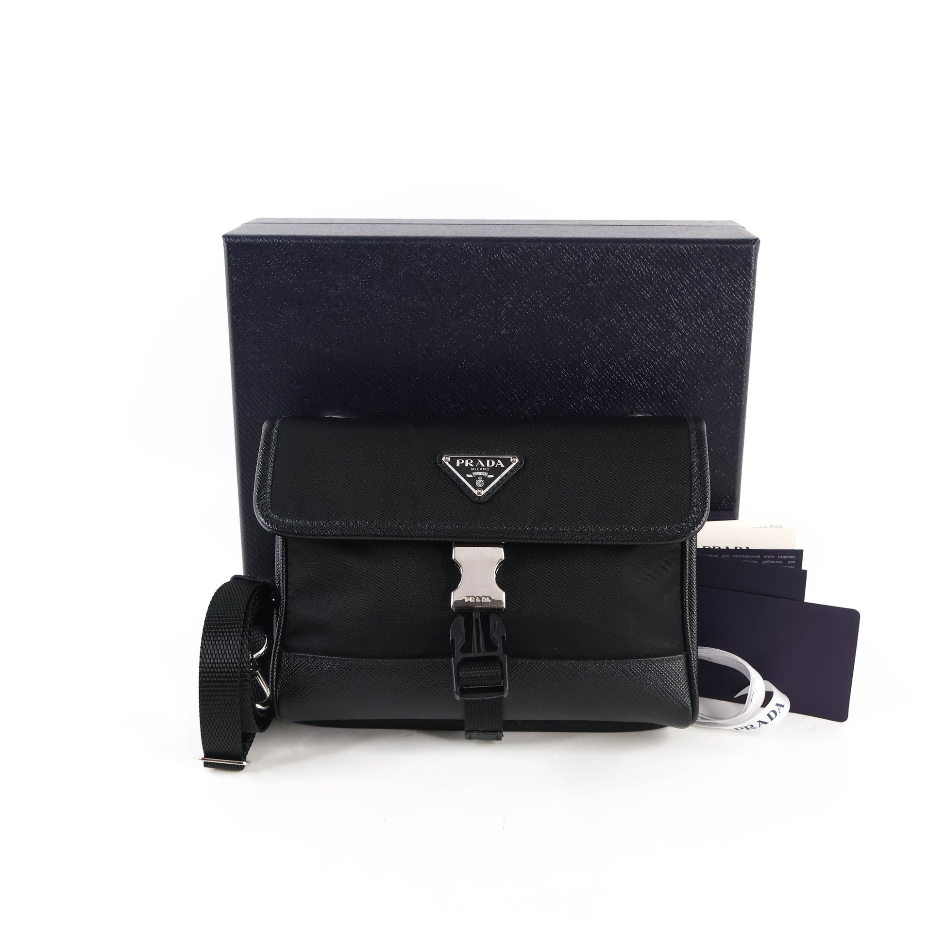 Protect your device in style with this sophisticated Prada smartphone case, crafted from premium Re-Nylon and Saffiano leather in sleek black. The durable combination of materials shields your phone from daily wear while maintaining an elegant, minimalist aesthetic. Featuring Prada's iconic design sensibility, this case elevates your tech accessories with luxury craftsmanship. The secure fit ensures reliable protection without compromising your phone's slim profile. Perfect for those who demand both functionality and refined taste in their everyday essentials.