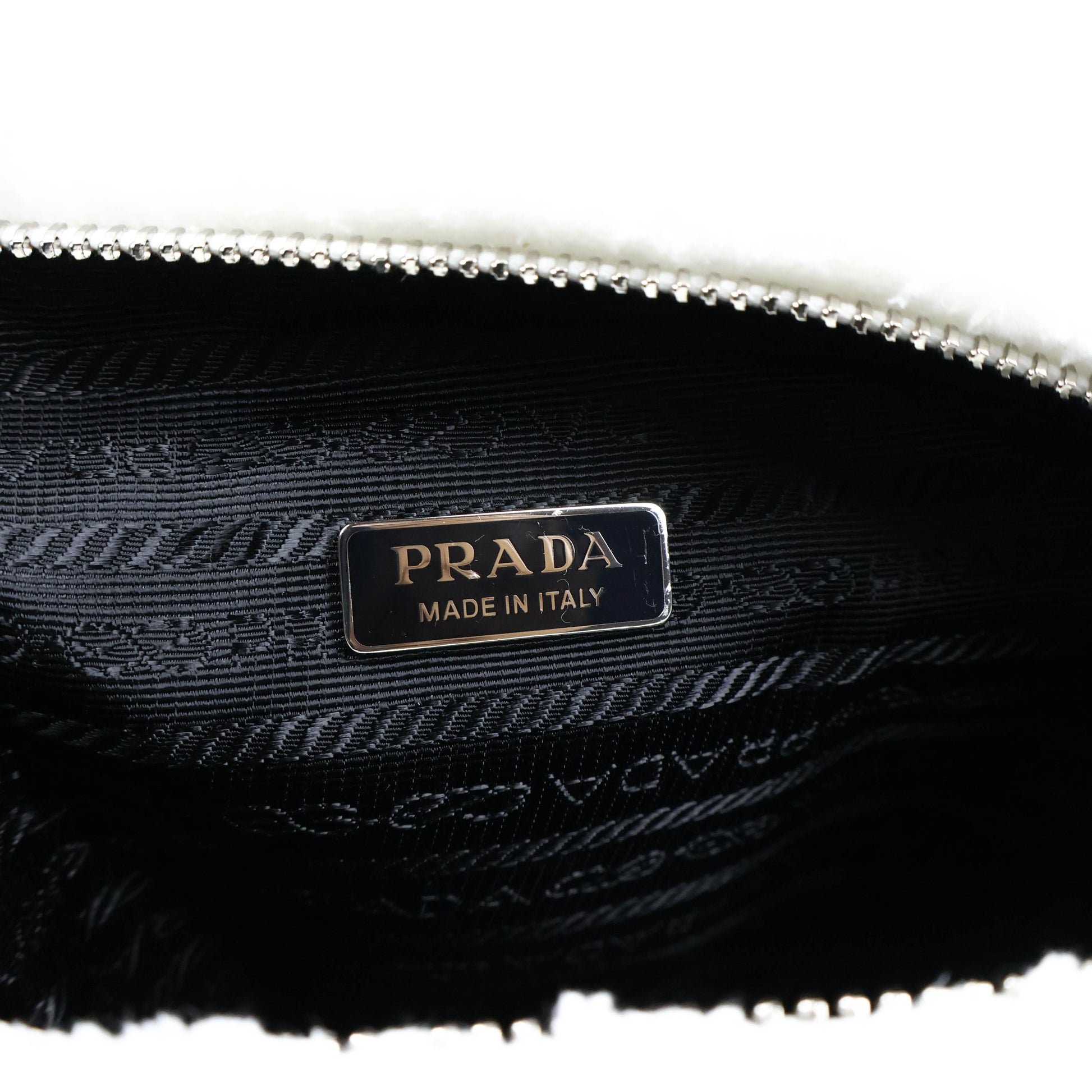 Prada Triangle Terrycloth Shoulder Bag White