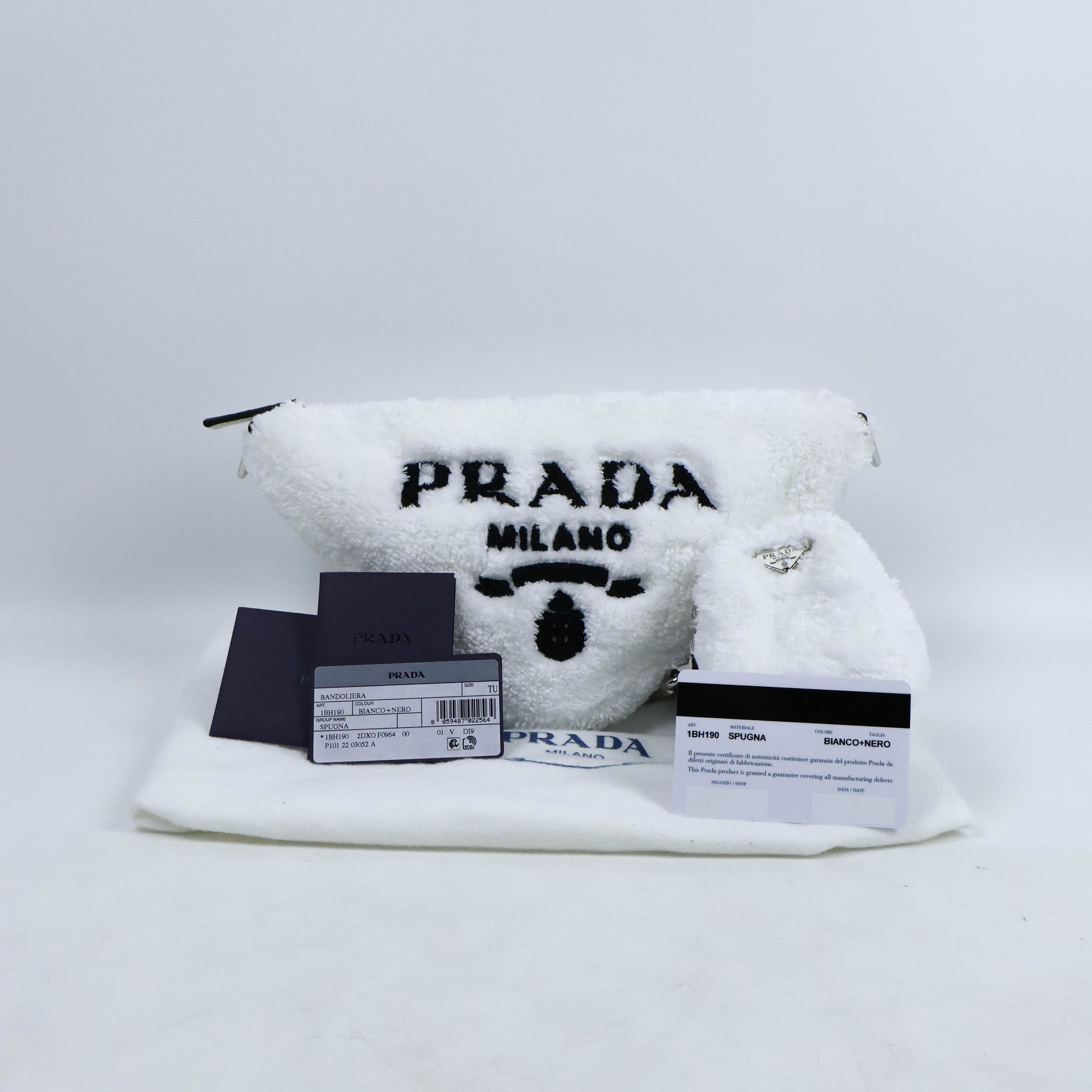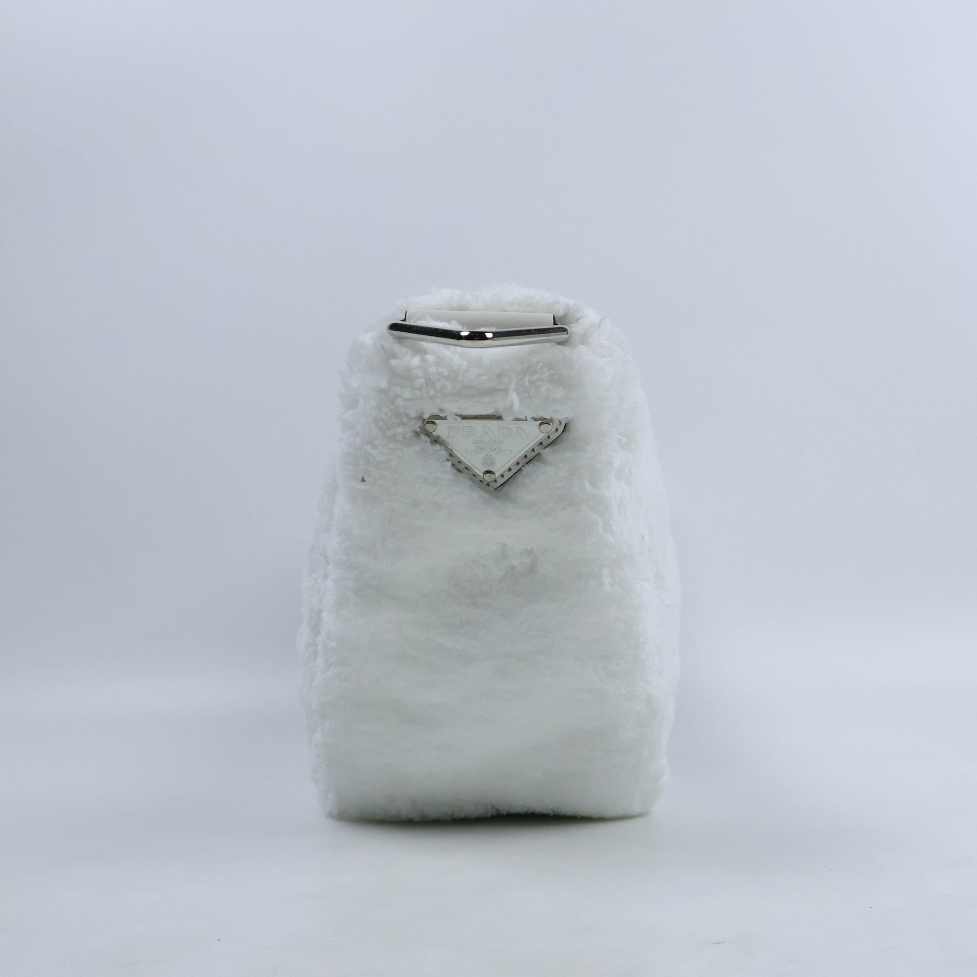 Elevate your style with the Prada Triangle Terrycloth Shoulder Bag White. Made with high-quality terrycloth, this bag exudes luxury and comfort. The unique triangle shape adds a touch of modernity while the spacious interior allows for easy organization. Perfect for any occasion, this bag will make a bold statement wherever you go!