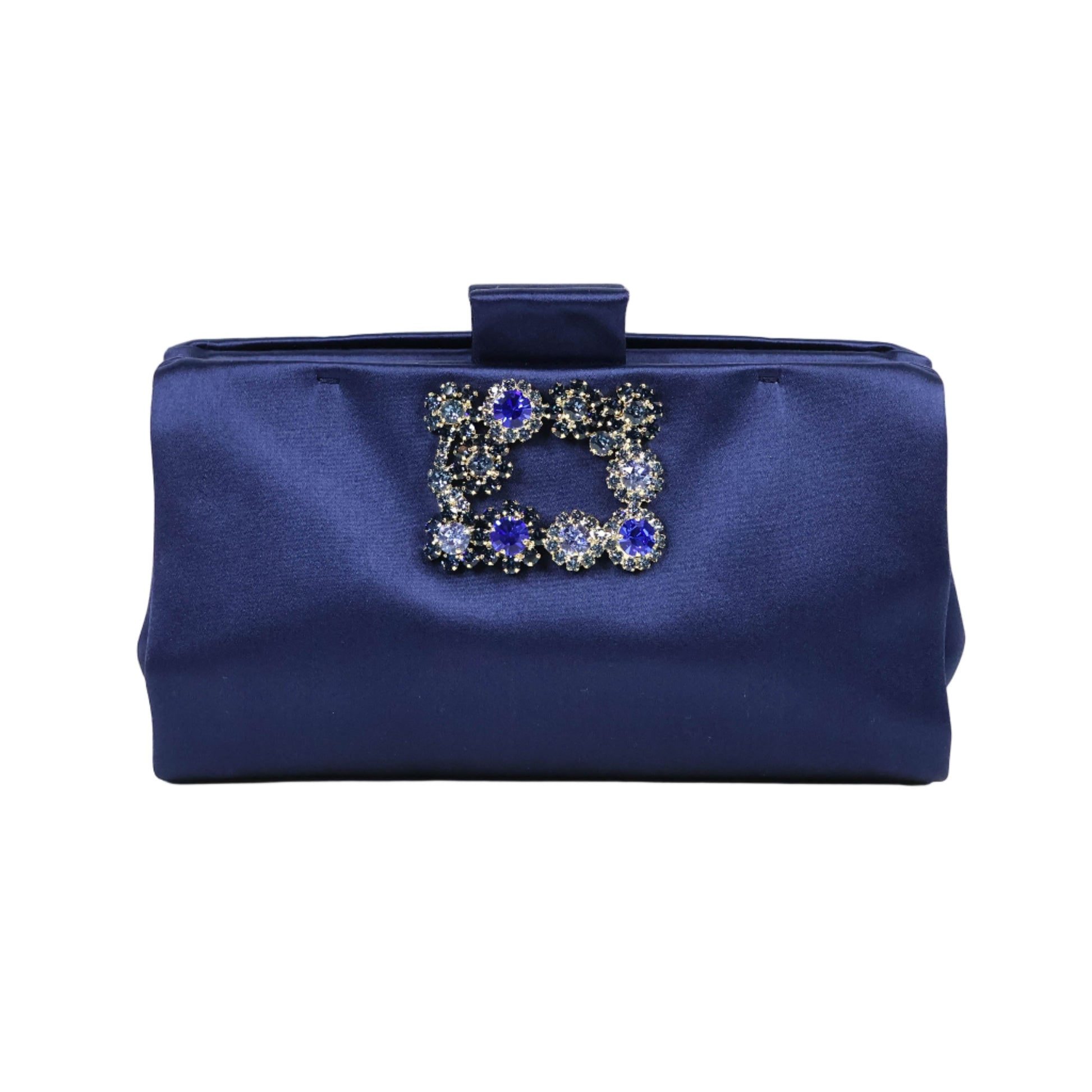 Roger Vivier Clutch Flower Crystal Satin Navy