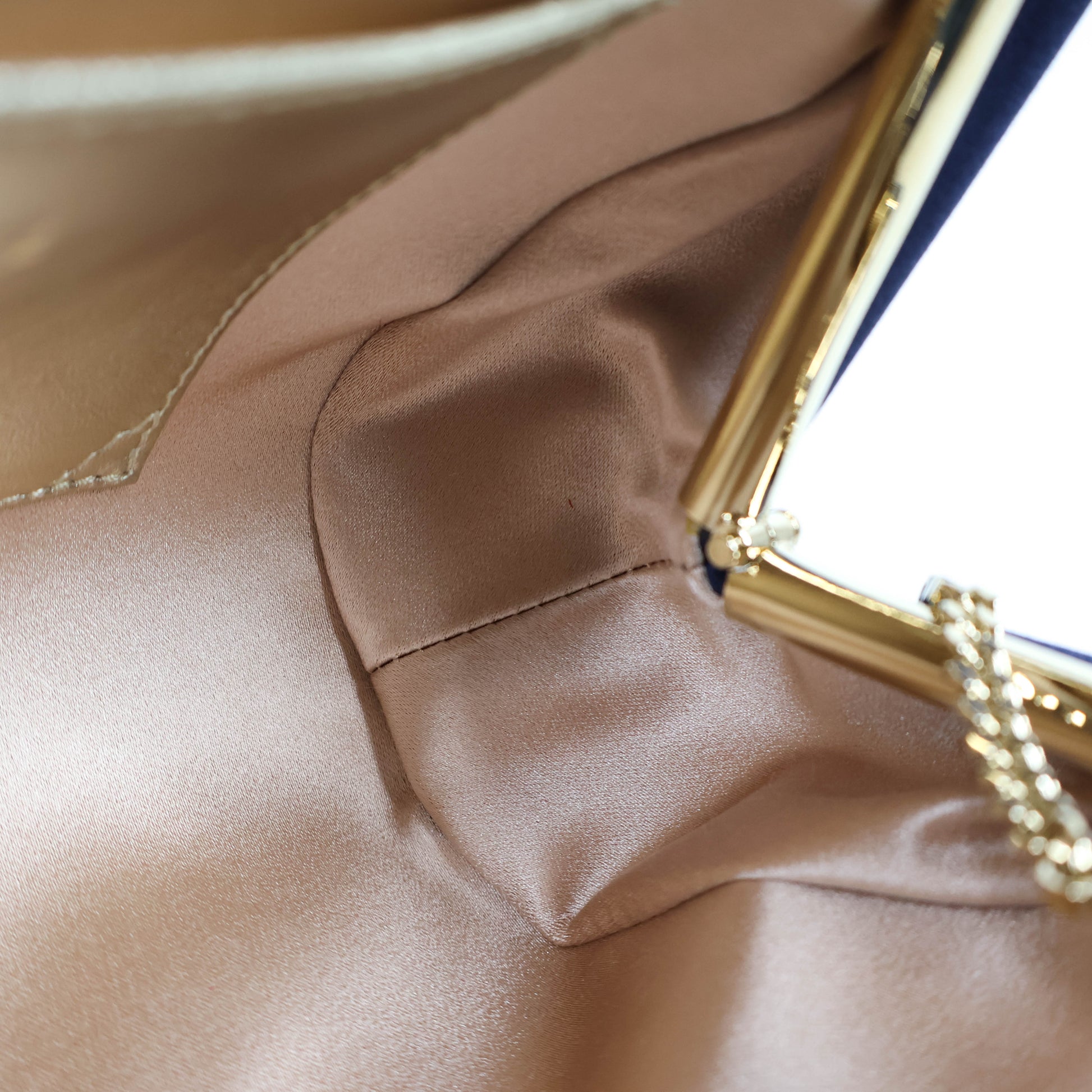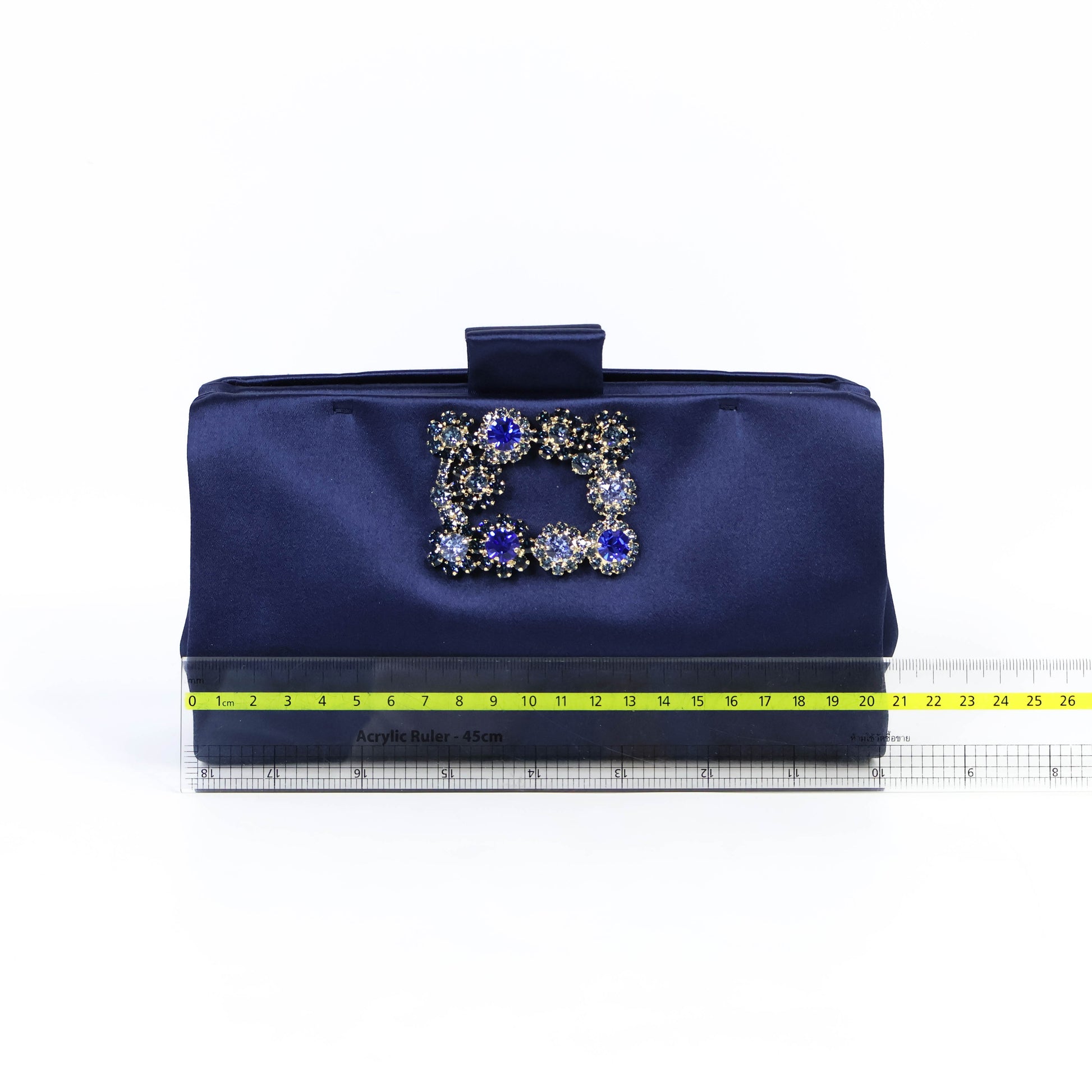 Elevate your elegance with the Roger Vivier Clutch Flower Crystal Satin in Navy. Crafted from luxurious satin, this clutch features delicate crystal flower embellishments that add a sparkling touch to any outfit. Its compact design offers just enough space for essentials, making it perfect for evening events or special occasions. The deep navy shade ensures a timeless appeal, complementing both classic and contemporary styles effortlessly. Make a statement with this sophisticated accessory that blends refined craftsmanship with radiant charm.