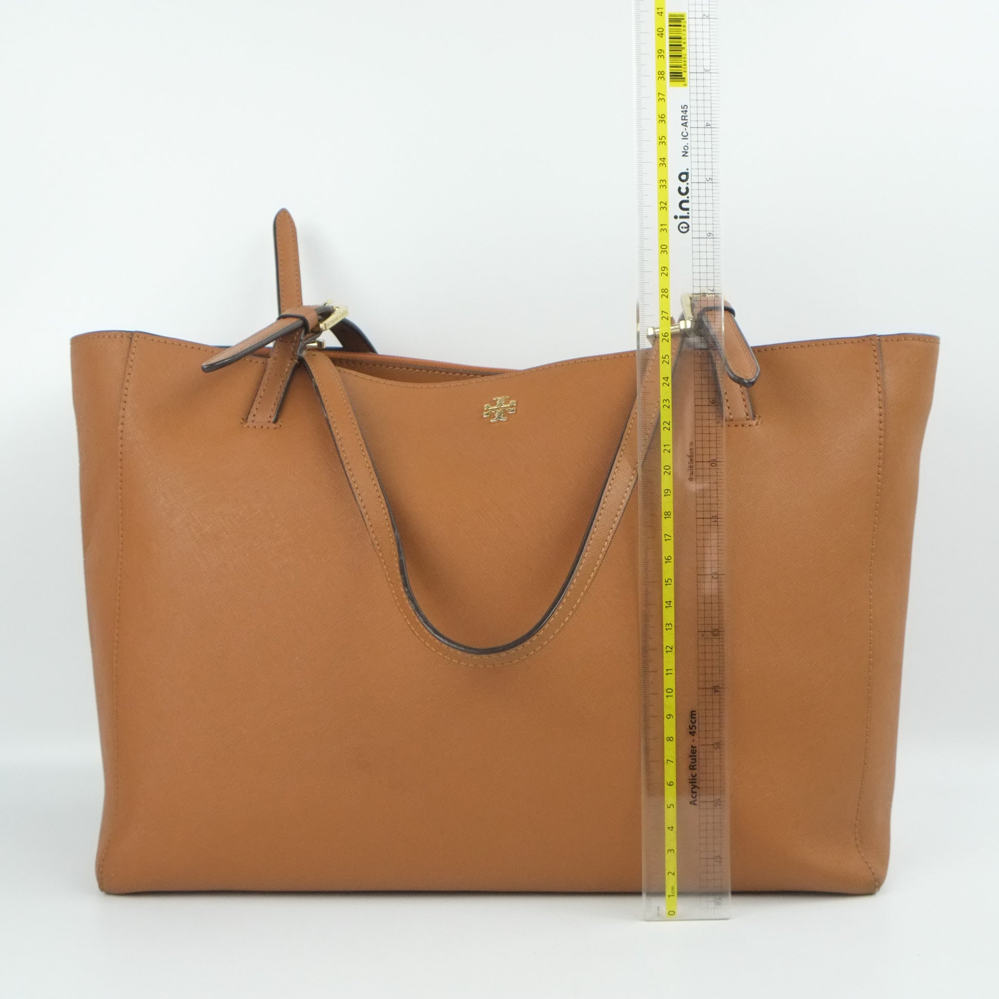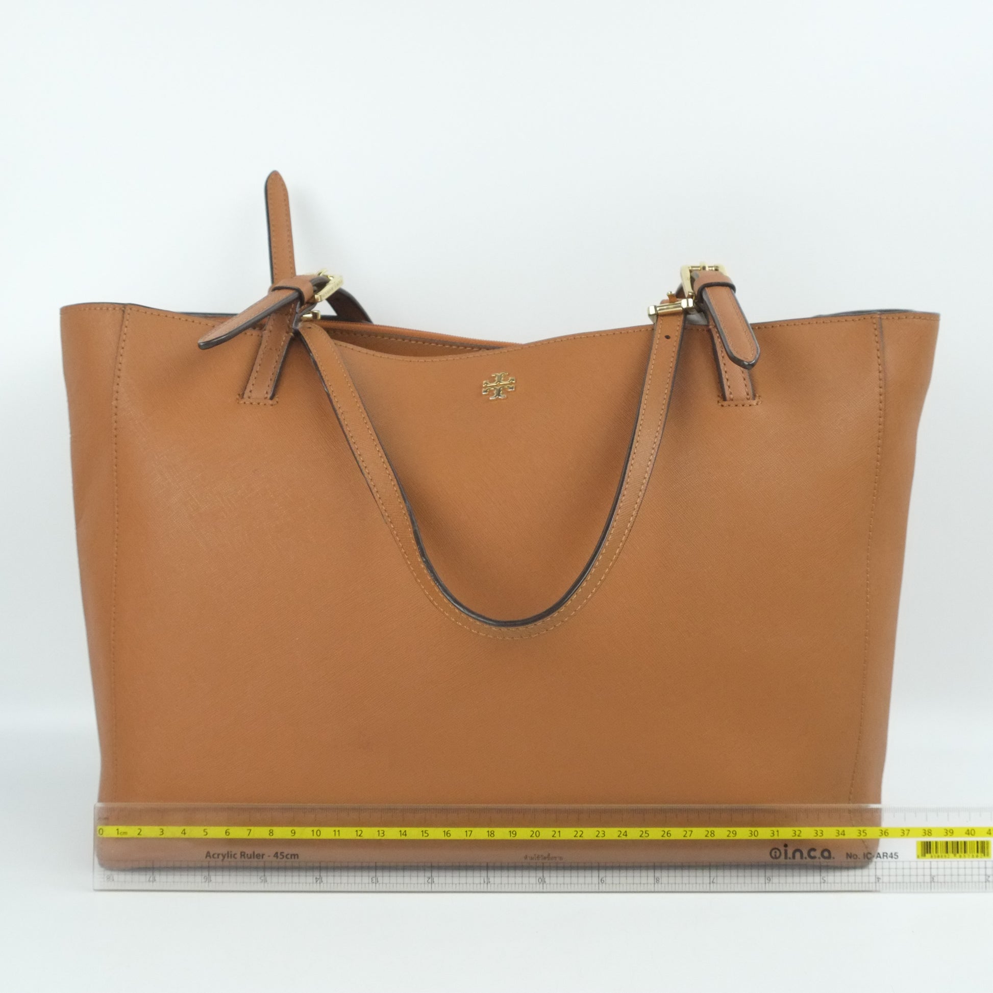 Elevate your everyday style with the Tory Burch Tote in rich brown leather. This spacious tote offers a perfect blend of elegance and practicality, featuring durable craftsmanship and ample room for all your essentials. Its timeless design effortlessly complements any outfit, making it ideal for work, shopping, or travel. Invest in lasting quality and versatile sophistication with this must-have accessory.