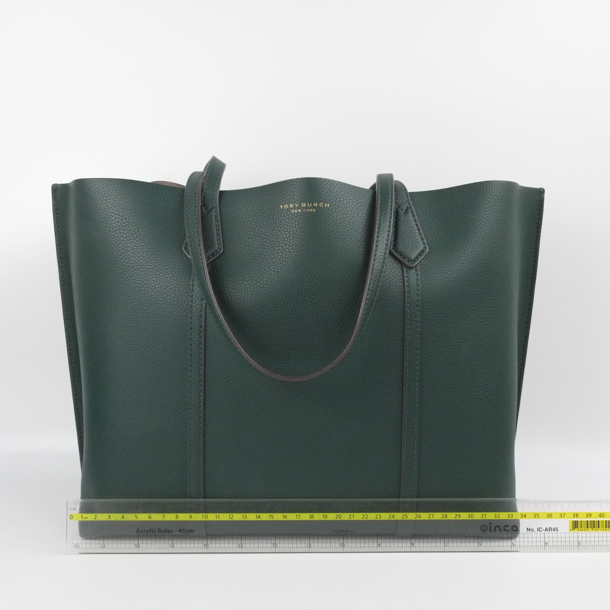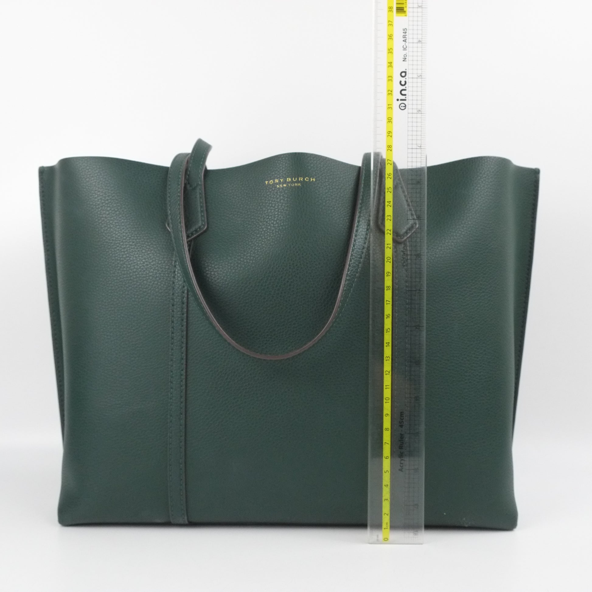 Elevate your style with the Tory Burch Tote in vibrant green. This spacious and durable tote offers ample room for all your essentials while adding a fresh pop of color to your wardrobe. Crafted with quality materials, it combines practicality with chic design, making it perfect for everyday use or special outings. Carry confidence wherever you go with this standout accessory.
