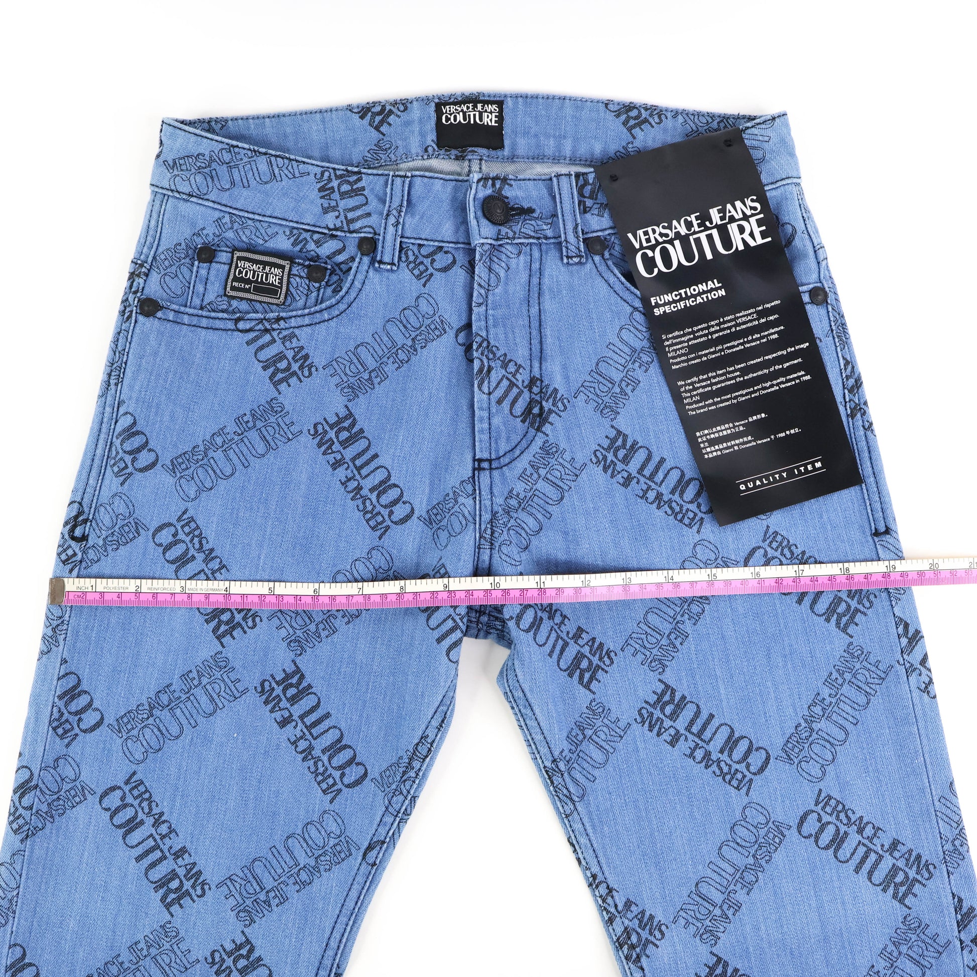 These Versace Jeans Couture Denim Pants in size IT45 are the perfect addition to any fashion-forward wardrobe. Made with high-quality materials and exquisitely tailored, these pants will elevate your style and make a statement. Show off your unique and sophisticated taste with these stunning pants.
